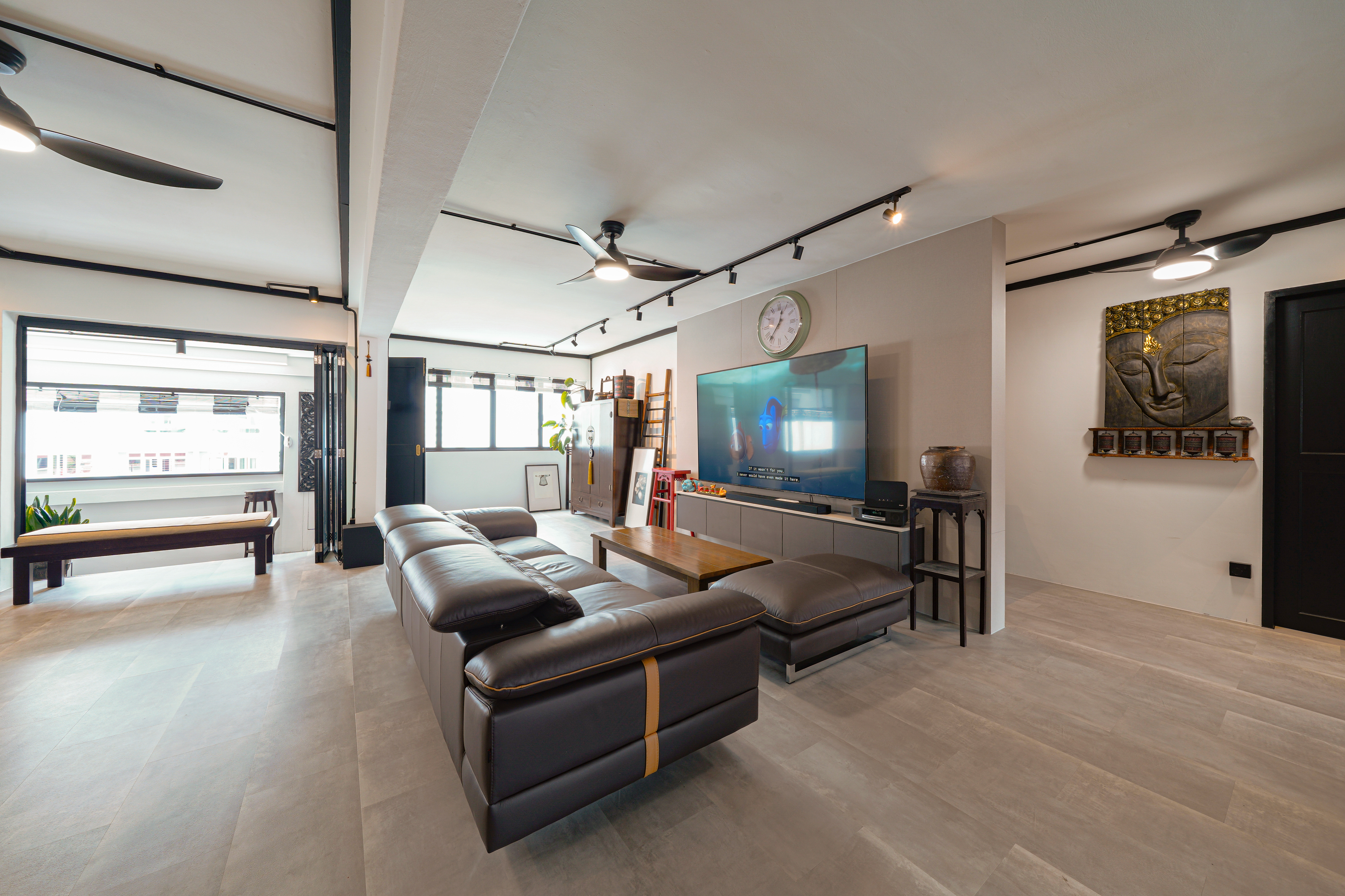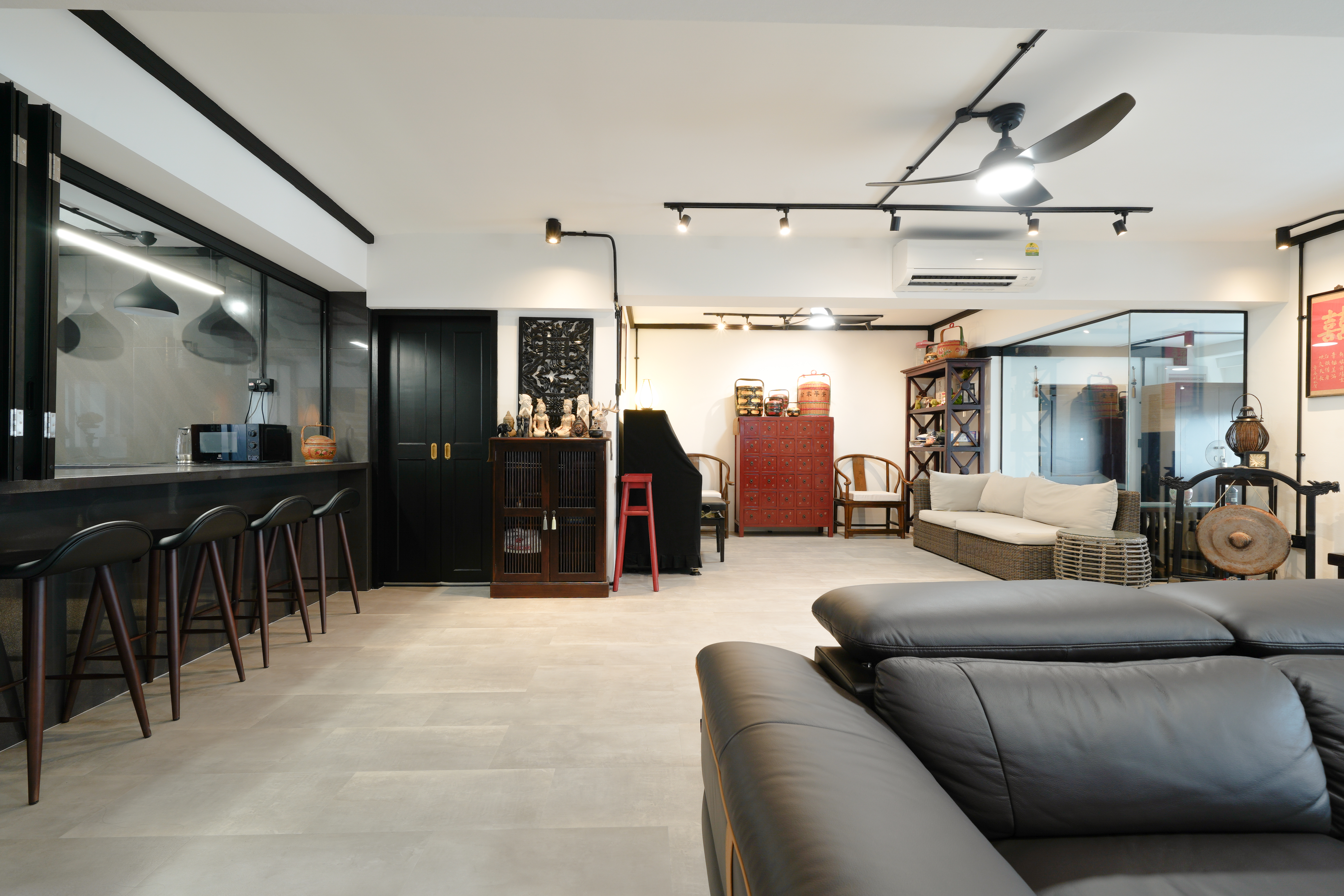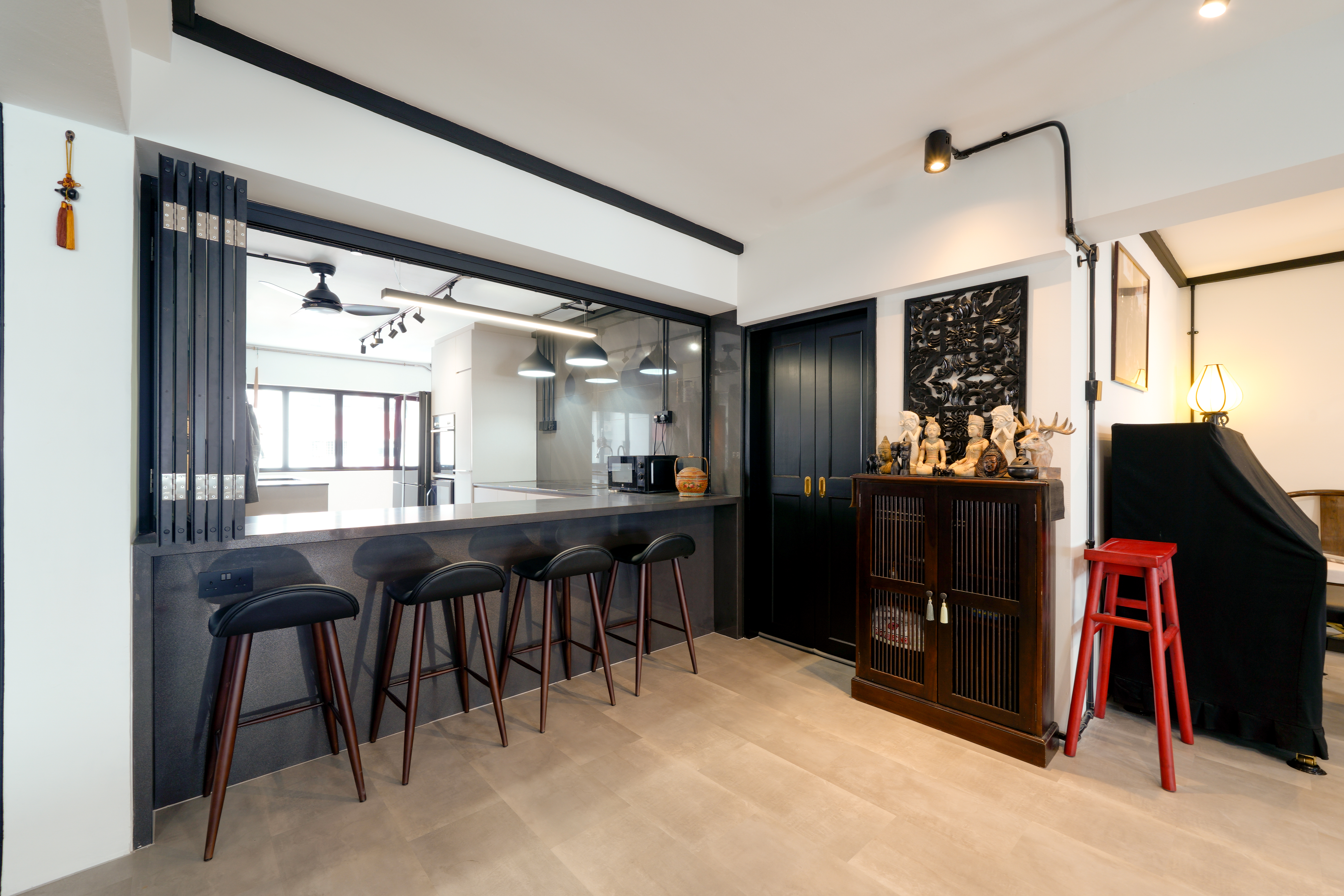 Traditional Asian craftsmanship meets Modern Industrialism in this Marsiling resale flat. It is two themes that you might not have expected to work together, yet the elements somehow manage to harmoniously blend together.