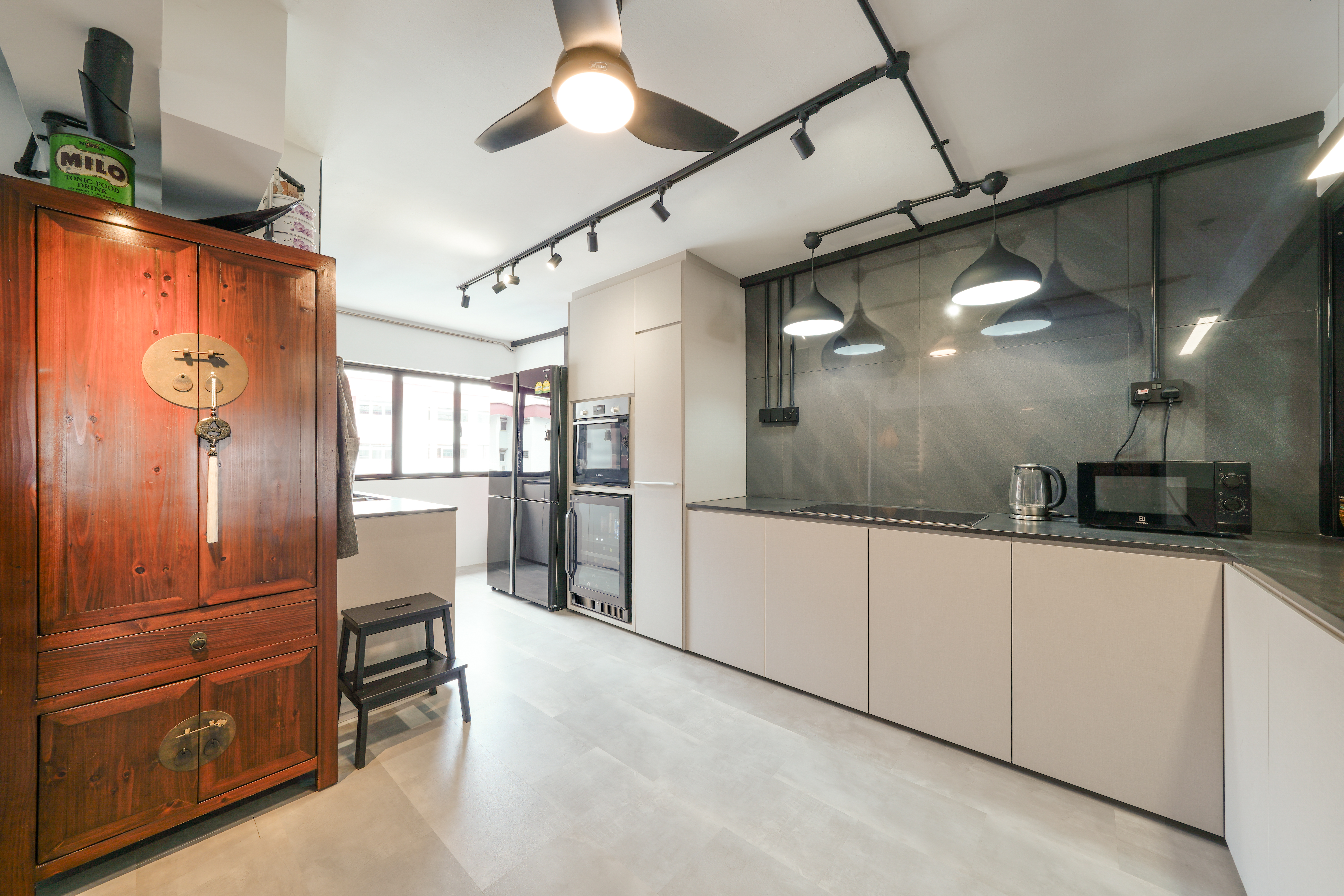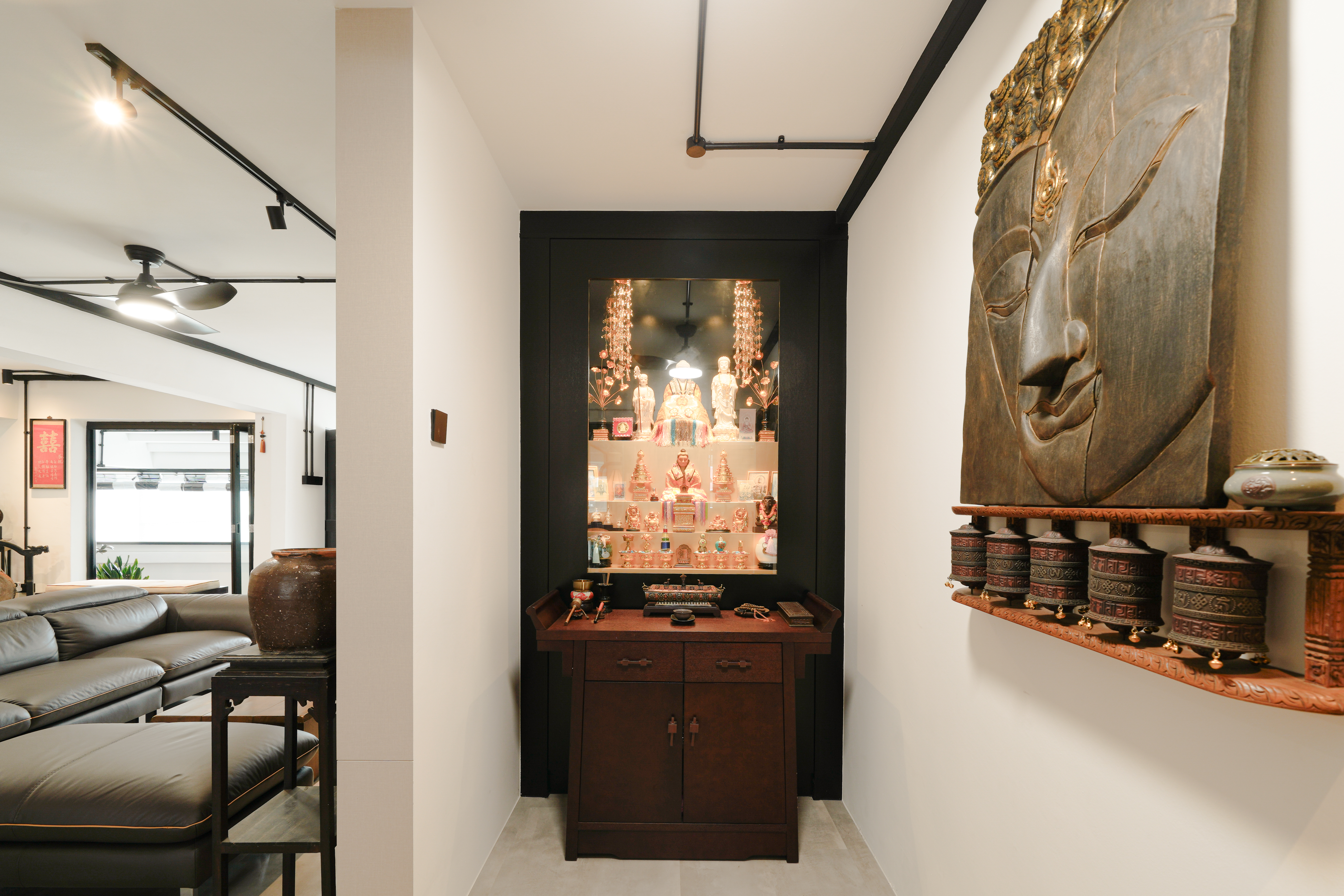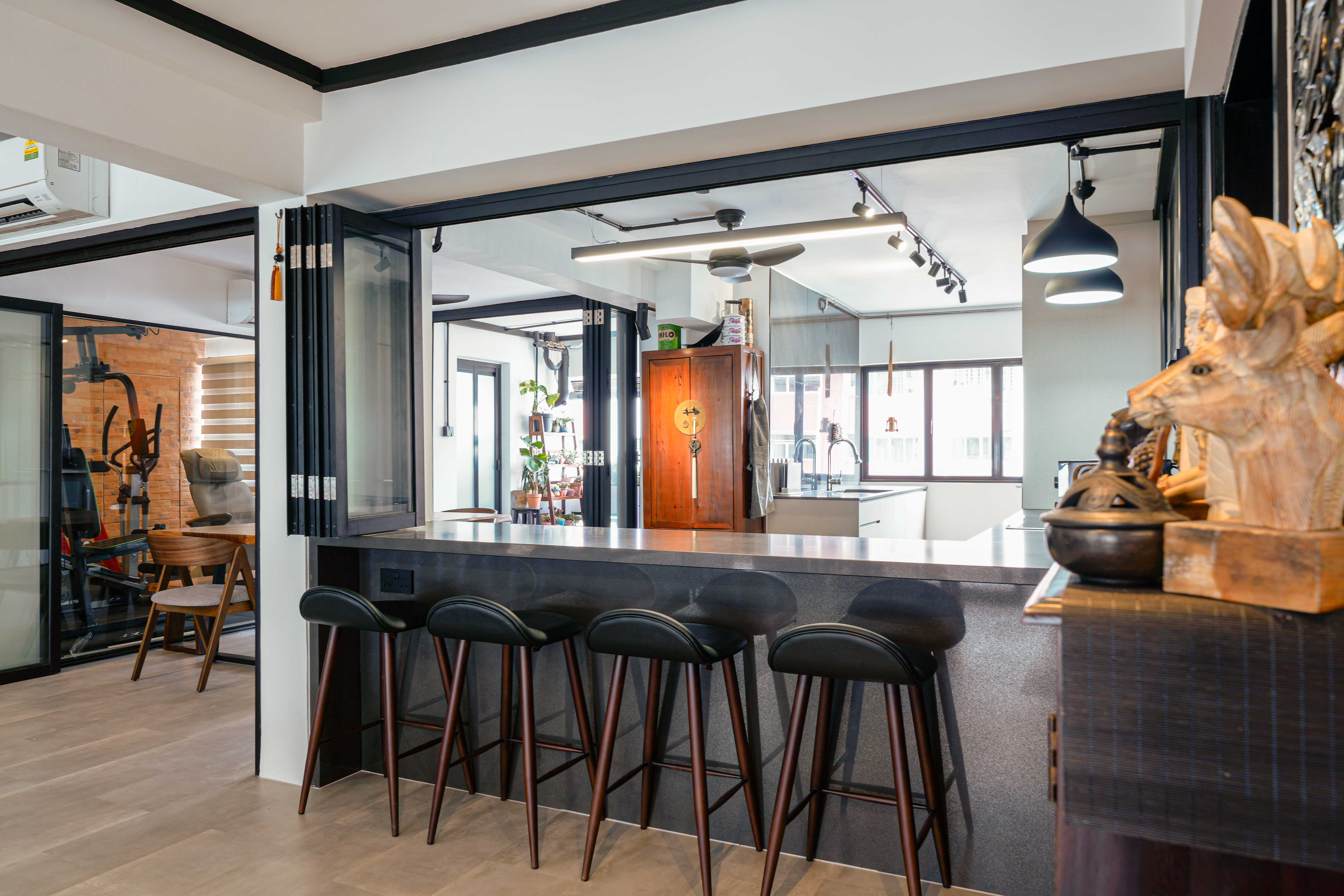 Traditional Asian craftsmanship meets Modern Industrialism in this Marsiling resale flat. It is two themes that you might not have expected to work together, yet the elements somehow manage to harmoniously blend together.