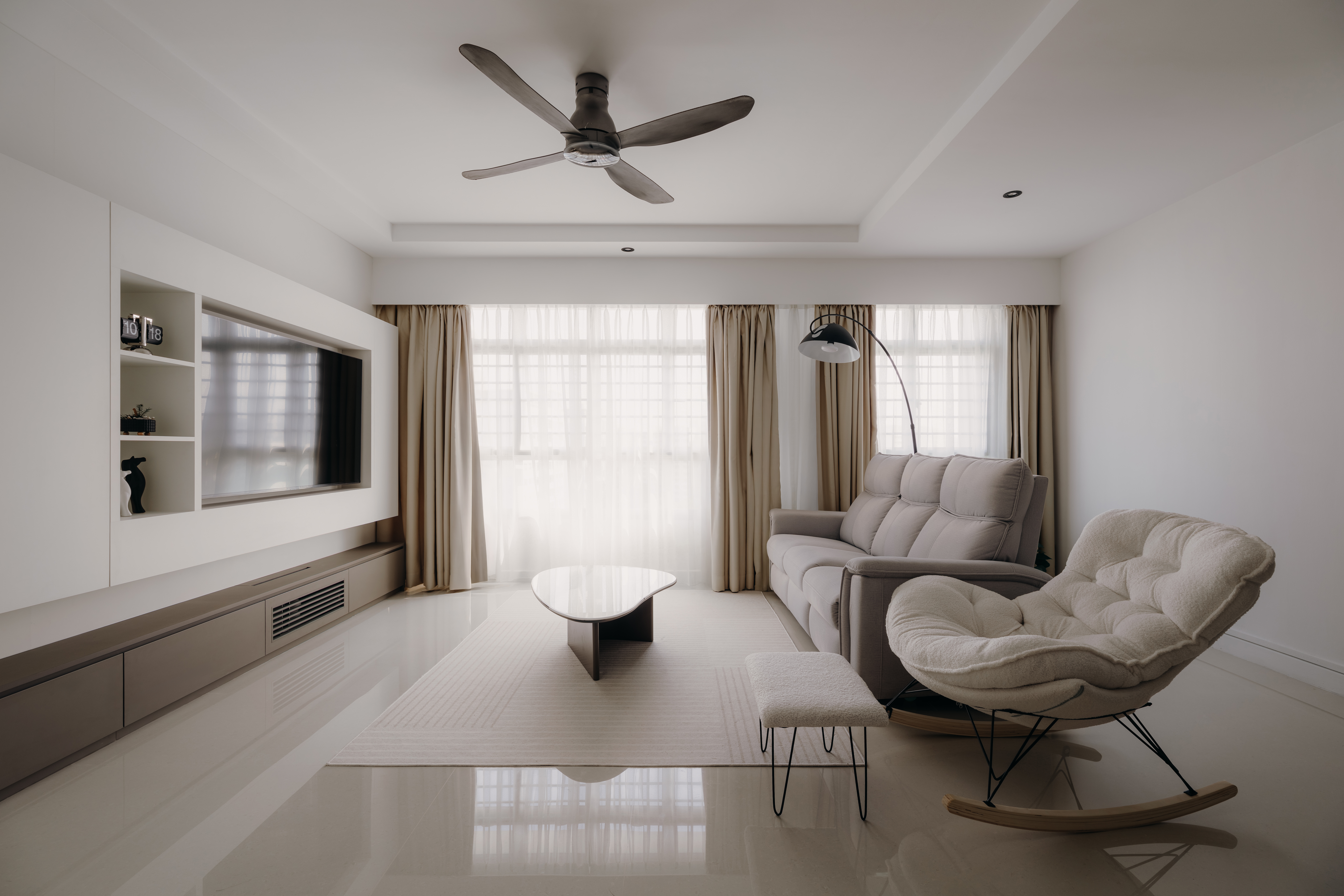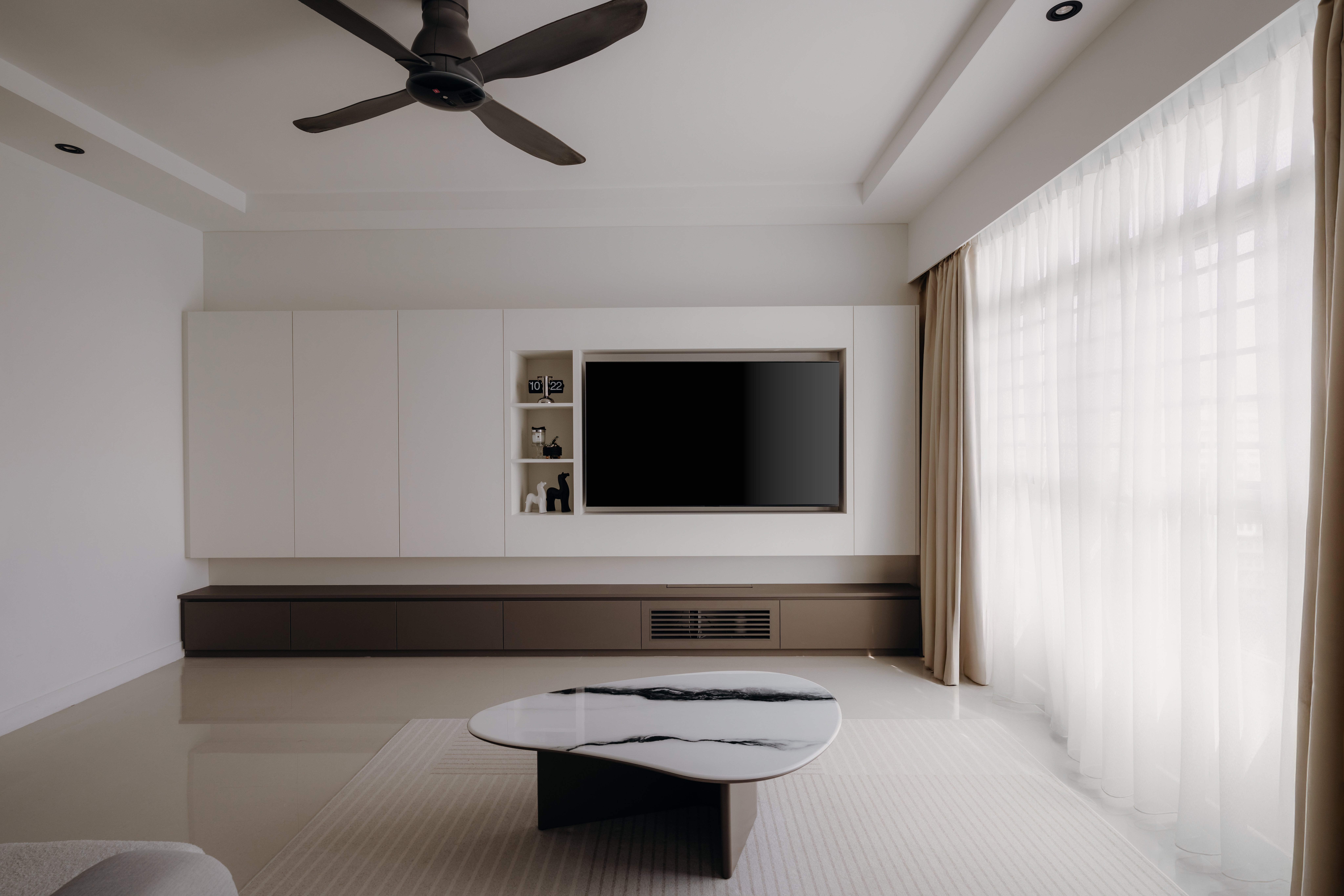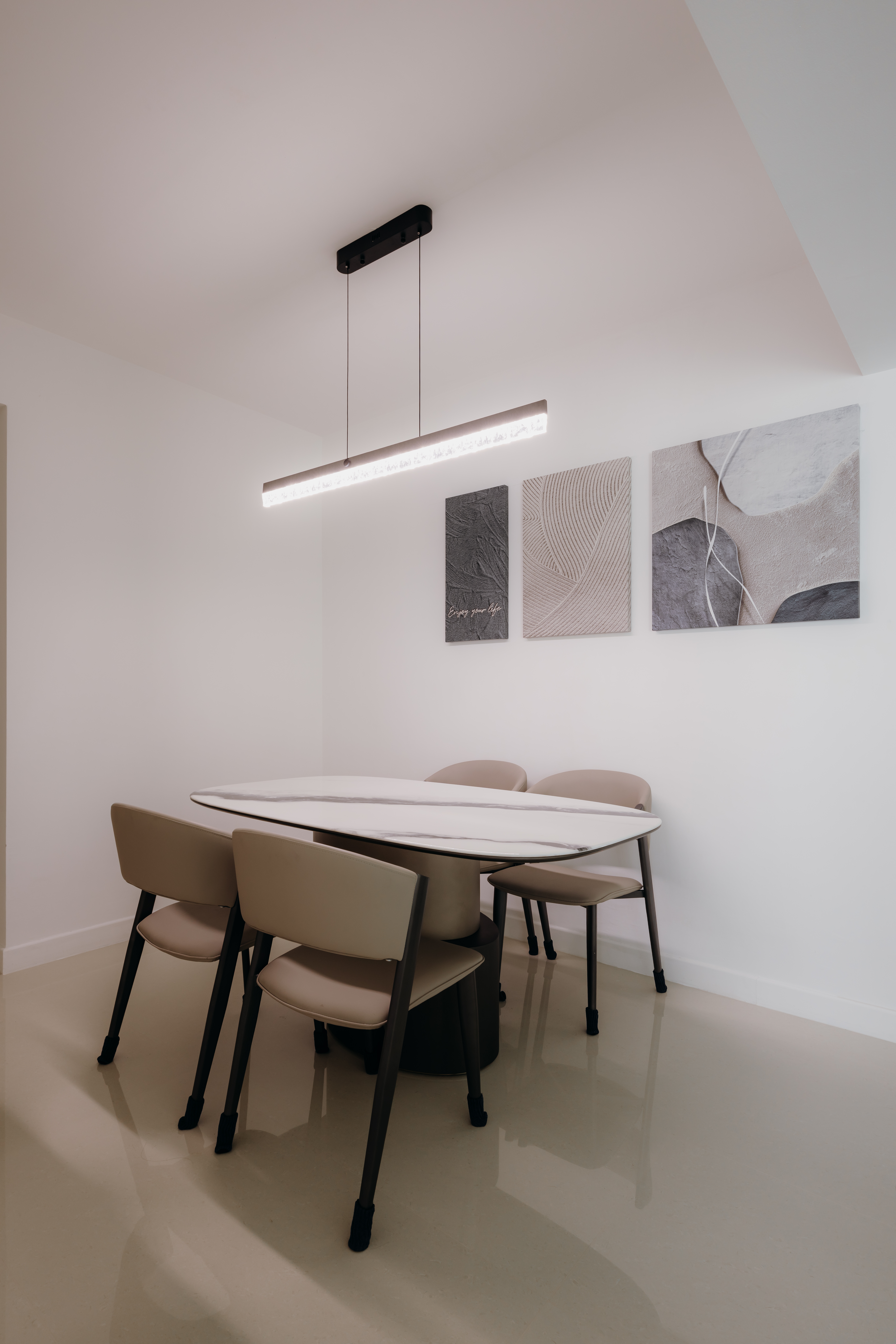 In the Monochromatic Muse, simplicity takes center stage, seamlessly paired with a richness of texture and understated luxury. We meticulously balance varying shades of cool whites and profound charcoals, utilizing textural contrasts in materials like polished concrete, matte finishes, sleek metals, and soft linens to create visual interest without clutter.